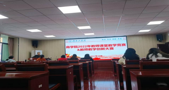 为进一步积累教学经验,不断提高业务素质,促进教学质量和教学水平的不断提高,我院开展2022年教师课堂教学竞赛和教师教学创新大赛初赛。本次初赛于2021年12月25日下午在经管楼302教室举行,大赛由商学院副院长李闯主持,院长王小兵莅临指导,全体中青年教师进行了观摩旁听。