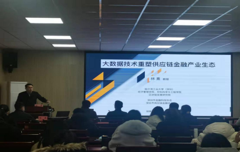 1月6日上午,哈尔滨工业大学(深圳)材料学院和经管学院双聘教授、区块链发展研究院院长和材料基因与大数据研究院副院长林熹教授应邀来商学院做“大数据技术重塑供应链金融产业生态”主题讲座,讲座在经管楼302报告厅举行。