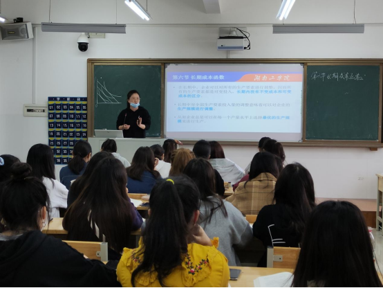 本次公开课主讲内容是《长期成本函数》。课前,朱送花以问答形式带领学生回顾先前课堂内容,复习巩固所学知识,通过案例引出新课教学内容。课上运用启发式教学方法并结合雨课堂智慧教学工具,重点讲授长期平均成本曲线和规模经济,授课节奏紧凑,重点突出。其理论与实例相结合的授课方式,丰富了教学手段和教学形式,有效提高学生学习兴趣,提升学习效率。