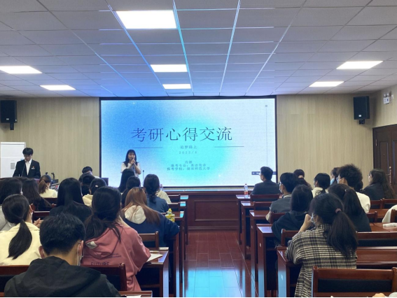 经验分享环节,八位优秀考研学生代表分别从自身考研经历出发讲述了自己考研的心路历程及奋斗过程。围绕备考经历、专业课复习方法、目标院校选择、考研调剂注意事项、考研心理调适等方面进行了经验分享,让同学们更加明确考研的意义,增强考研的信心和决心。