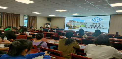 首先,黄飞对学院初赛的开展情况进行详细讲解。在学院的大力推动和同学们的积极参与下,自主申报“互联网+”大学生创新创业大赛项目448个,其中高教主赛道项目346个、“红旅”赛道项目102个,项目类型涉及新工科、新农科、新文科等多个方面。