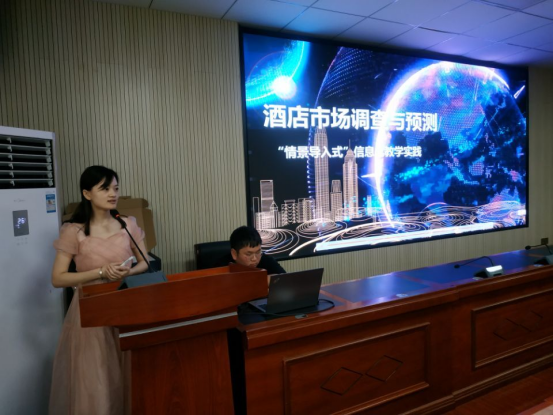 本次信息化教学竞赛,商学院精心组织、积极动员,教师踊跃报名积极参与,精心准备比赛课件。每位教师根据课程性质特点,合理设计信息化教学各授课环节,组织教学资源并实施教学,运用了多种信息化教学手段。比赛中她们首先介绍课程教学设计的思路及内容,其次进行了课堂教学展示。她们结合各自学科特点,深入挖掘各种信息化手段并注重与课程思政相结合,所授课程各具特色,引人入胜,实现“知识传授”和“价值引领”有机统一,展示了各自的教学风采和理论功底。