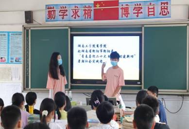 (实践团成员走进洪市中学宣讲)