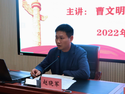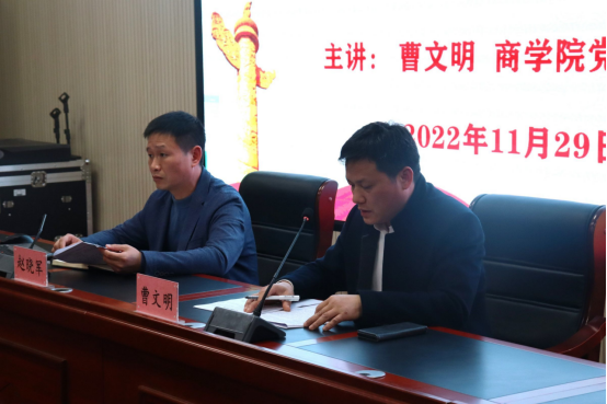 曹文明围绕“深入贯彻落实二十大精神,打好本科教育教学审核评攻坚战”作专题宣讲,要求全体师生坚持把学习宣传贯彻党的二十大精神作为当前和今后一个时期的首要任务,切实把思想和行动统一到大会精神上来,推动党的二十大精神落地见效。他对同学们提出三点希望:一是牢固树立“校荣我荣,校兴我兴”的主人翁意识,以饱满的热情,良好的精神面貌,迎接本科教育教学审核评估;二是切实提高思想道德修养,全面提高人才培养质量,尊敬师长,举止文明,真正做到“评估工作人人有责,迎评促建从我做起”;三是努力养成良好的学习风气,自觉践行“勤学、务实、圆融、卓越”的校训精神,用自己实实在在的行动为审核评估作增光添彩,为学校的发展添砖加瓦。