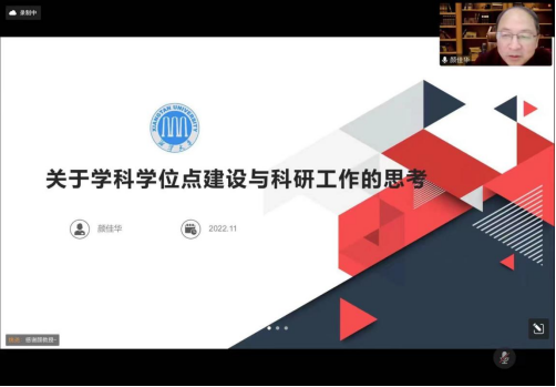 颜佳华教授首先分享了湘潭大学学科学位点建设的经验做法,并针对我院的学科建设提出了针对性建议:坚持“创特色入主流”的理念,凝练三个以上特色鲜明的研究方向;不断优化师资队伍结构,提升教师的教学科研水平和实践经验;强化办学条件建设,持续加强软硬件投入。颜教授的经验分享对我院的学科学位点建设具有极其重要的指导意义。