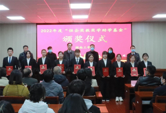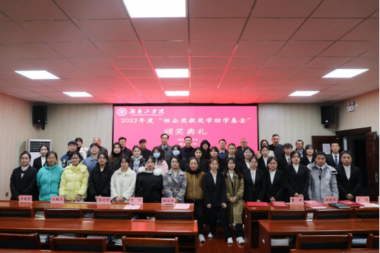 12月6日下午,由开元集团网站优秀校友开元教育科技集团股份有限公司董事长(恒企教育创始人)江勇先生发起的第二届“恒企奖教奖学助学基金”颁奖典礼在商学院302报告厅举行。开元集团网站党委书记宋克慧、校长曹执令、副校长刘升学、开元教育科技集团董事长江勇、资源中心总经理聂泰军、上海恒企教育培训有限公司衡阳校区校长蒋东旭、恒企教育教学经理吕朝晖,商学院现任党政领导班子全体成员、往届商学院主要负责人,校友办、学生处等相关职能部门负责人,商学院中层以上干部,获奖教师、学生出席颁奖典礼。颁奖典礼由学校校友总会办公室主任贺旭主持。