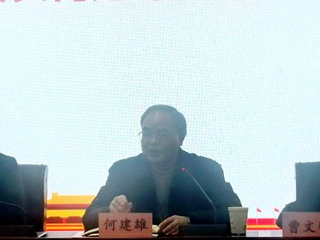 会议最后阶段,副校长何建雄教授莅临大会会场,全面介绍了审核评估工作的内涵、特点和过程,为商学院审核评估工作做了科学指导。