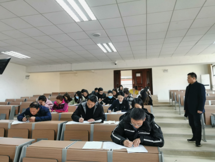 2月21日,商学院组织全体班主任老师在601教室进行本科教育教学审核评估知识测试,党委书记曹文明担任主监考,参加测试的人员严格遵守考场纪律、认真作答,考场秩序井然,考风良好。