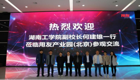 第二站,何建雄一行走访了新道科技股份有限公司,新道科技副总裁张杰、助理总裁何胜利、湖南校企合作经理肖仁忠等进行接待,参观了用友数智企业体验馆,观摩了用友在智能财务、智慧营销、数智人力、工业互联网、教育等领域提供的数智化应用场景和模式,了解了大数据、人工智能、区块链等新技术发展对各领域人才的新挑战和新要求,实地感受了行业企业以数智化转型赋能教育的实践探索。双方围绕数智人才培养解决方案和产教融合发展等议题进行了研讨和交流,针对产教融合合作模式进行了深入讨论,均表达了合作共赢,共谋发展的意愿。