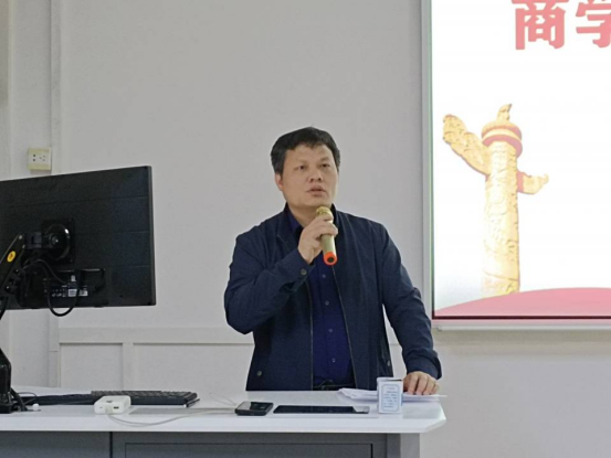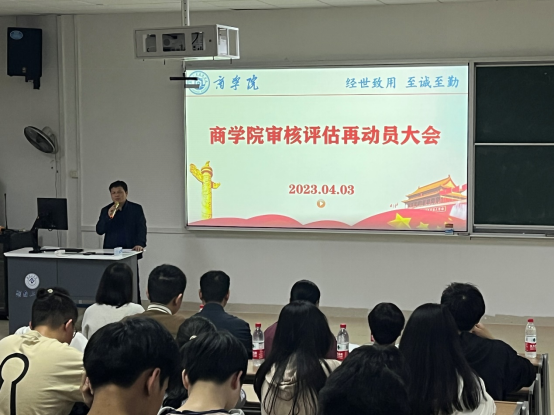 4月3日,商学院在经管601召开本科教育教学审核评估再动员大会。商学院党委书记曹文明、党委副书记赵晓军、全体班主任、辅导员、团学干部、班委通过线上线下相结合的方式参与本次大会,会议由商学院学工办主任段思遥主持。