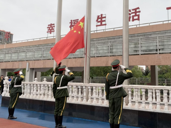 仪式开始,国旗护卫队成员们护卫着鲜艳的五星红旗,气宇轩昂,迈着整齐划一、铿锵有力的步伐入场,踏上升旗台。国歌奏起,五星红旗冉冉升起,全体成员庄严肃立,向国旗行注目礼,致以崇高的敬意。