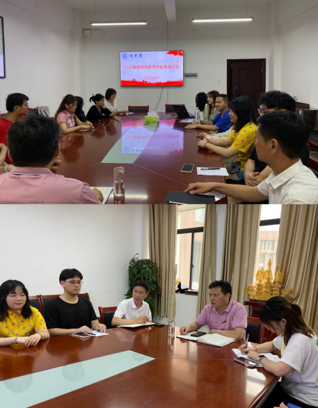 为深入了解我院毕业生发展情况,倾听2023届毕业生的需求与建议,6月8日,商学院召开2023届毕业生系列座谈会,商学院党委书记曹文明、党委副书记赵晓军、学工办主任兼分团委书记段思遥、全体辅导员、毕业生代表面对面交流,大家齐聚一堂,分享湖工四年的收获与感悟,为学校的发展献计献策。
