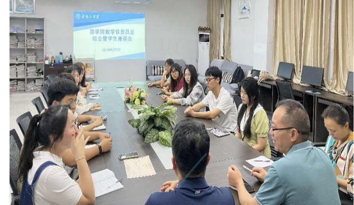 2023年6月13日下午16:00,我院教学信息员总结会暨学生座谈会在经管楼202举行。学院一直重视信息员工作,为进一步完善教学质量监控体系,加强对教学工作的信息反馈,同时结合我院“我为评估做贡献”的主题活动,充分发挥教学信息员在管理教学中的中坚力量,提高课堂教学质量和学院教学管理水平,召开本学期的信息员总结会及座谈会。商学院院长王小兵、副院长李闯、教务办张艳红老师以及我院全体教学信息员参加了会议。本次会议由商学院副院长李闯主持。