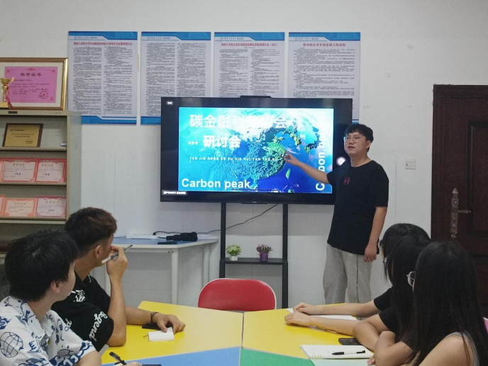 为构建绿色发展和“双碳”研究创新科普体系,进一步推动碳金融进校园,2023年6月25日下午,商学院碳金融科普协会于经管楼206召开学期工作研讨会,碳金融科普协会成员及学生代表参与会议。