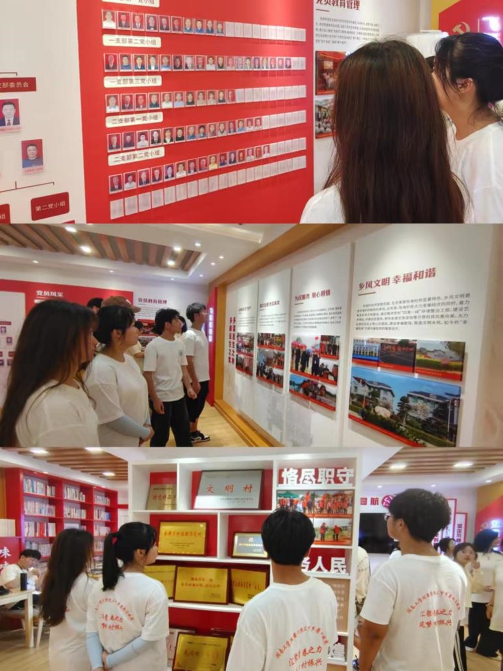 实践团队成员在罗开衡书记的带领下走进农耕博物馆、农耕文化长廊、农家书屋、职工之家等场地了解怡海村的乡村文化建设,在村支部委员会,大家看到了“一核五会” “一约四会” “村规民约”对统筹推进乡村建设发展起到的积极作用,在实践中启发思考,探索乡村发展新路径。