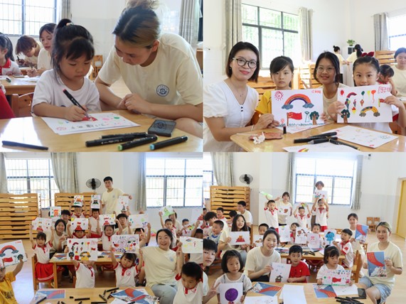 传承红色薪火,绘出心中祖国。五星红旗在天安门的上空高高飘扬、宇航员挥舞着五星红旗成功返航……在实践团成员的带领下孩子们一笔一画认真描绘心中的最美祖国,感悟祖国的伟大。画出了对党、对人民、对祖国的浓浓爱意和美好祝福,激发孩子们的爱国情怀,增强了民族自信心和自豪感。