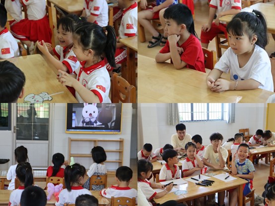 聆听红色故事,赓续红色血脉。团队成员用生动的语言向小朋友们讲述了五星红旗的由来。通过学歌曲、识图片、你问我答等小游戏向幼儿科普党的二十大知识,以寓教于乐的方式引导小朋友深入了解党的二十大,播撒爱国的种子。小朋友们纷纷举起小手,分享自己的感受。