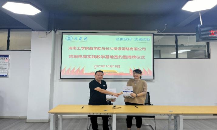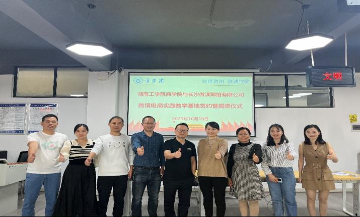 10月18日上午,商学院与长沙微漾网络有限公司成功举行了跨境电商实践教学基地签约暨揭牌仪式。商学院院长王小兵,副院长李闯、黄飞、朱纪红,国贸教研室主任温毅娴,实验中心主任刘锦志等老师出席仪式。