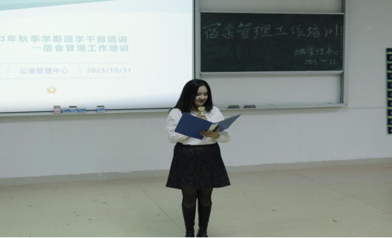 为提高商学院寝室管理水平,锻炼和塑造一支品质高、能力强、作风良的寝室管理队伍,切实提高寝室长的责任意识和安全意识,10月31日晚商学院召开2023年秋季学期团学干部培训——宿舍管理工作培训。商学院党委副书记赵晓军、辅导员白力可艳、阳慕蓉、主要团学干部及2023级新生和专升本新生寝室长参加了本次培训。