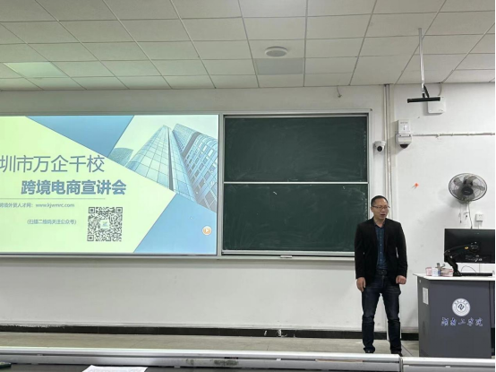 11月9日下午4:00商学院在建工楼6106举办了一场校园招聘宣讲活动。此次招聘会是深圳市万企千校网络科技有限公司针对学院国际经济与贸易专业2024届毕业生的实习+就业专场招聘会,学院副院长李闯、教研室主任温毅娴及国际经济与贸易专业全体毕业生参加了会议。