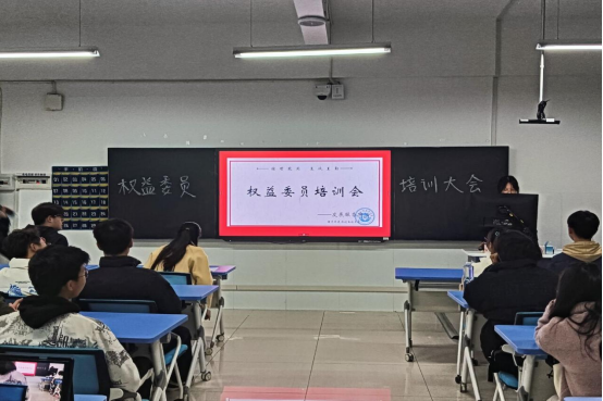 为加强维护学生权益工作,了解学生需求,解决学生困难,提升权益委员工作能力,畅通学生反馈渠道,完善权益维护流程。商学院于11月17日在104教室召开权益委员培训大会。商学院辅导员阳慕蓉、发展服务中心全体成员、22级23级全体权益委员及各班班长参与此次培训。