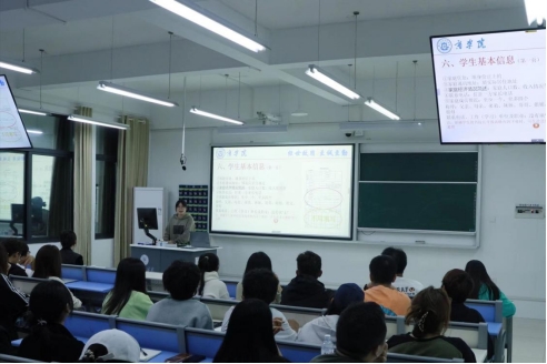 会议第二阶段,商学院发展服务中心陈思维对23级班团及21级专升本班团进行劳动教育学时申报培训,分从劳动理论教育、日常生活劳动、生产实践劳动、服务实践劳动、创新性实践劳动五大板块对劳动教育学时计量标准进行解答。