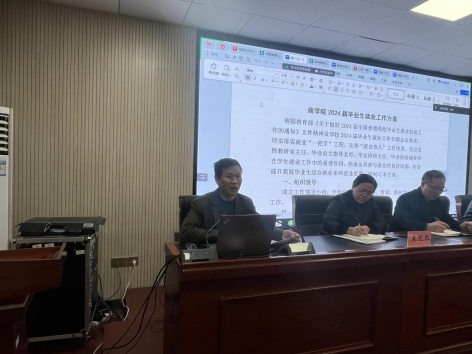 会议第一阶段,商学院党委副书记赵晓军总结了我院2023届毕业生就业情况,详细解读了《商学院2024届毕业生就业工作方案》,就落实就业“一把手”工程,完善“就业育人”工作体系中教研室主任、毕业论文指导老师、毕业班班主任、毕业带班辅导员在学生就业工作中的重要作用和职责进行说明,确立了“全员参与、全方位关注、全过程指导”的就业工作理念,积极构建院领导靠前指挥,教研室积极响应,专任教师与辅导员联动发力、角色互补、有效配合的就业工作机制,联合家长共同帮助毕业生找准职业方向,促进毕业生顺利毕业、尽早就业,全力以赴实现我院毕业生高质量就业。