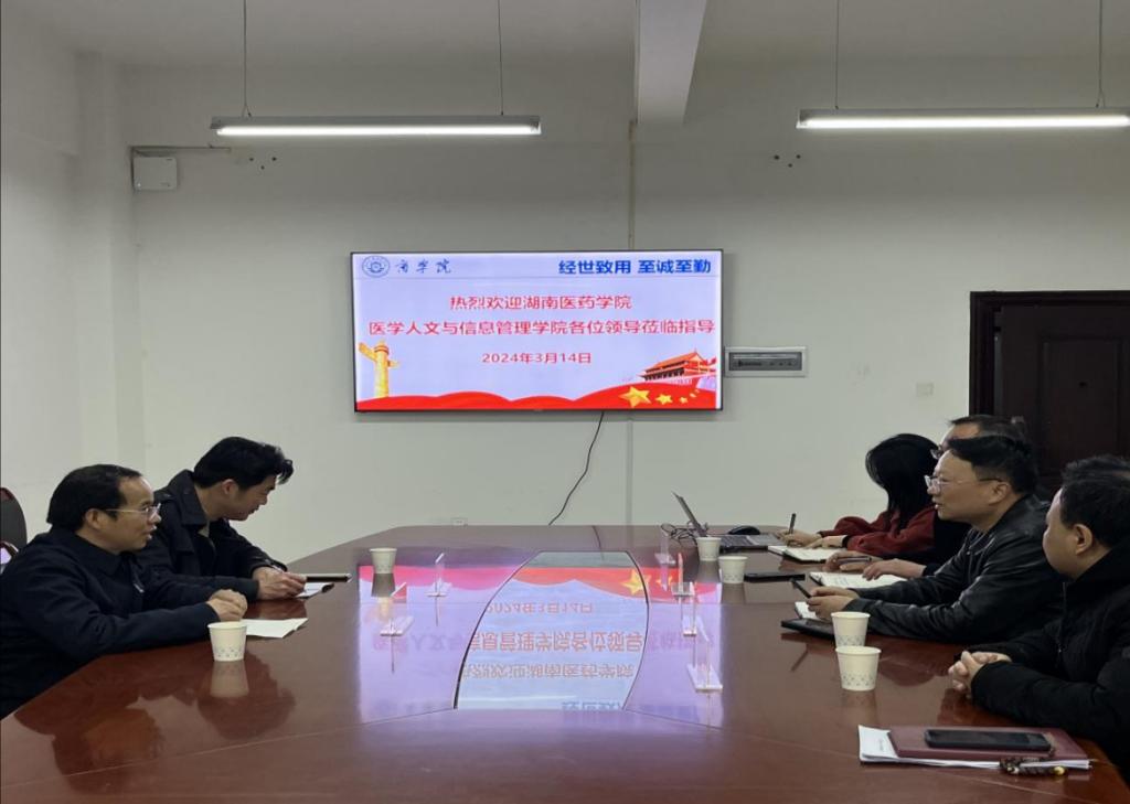 3月14日,湖南医药学院医学人文与信息管理学院党总支书记杨海平、工商教研室主任张卓一行赴我院调研,考察交流人才培养和微专业建设情况。商学院院长王小兵、副院长李闯、工商管理教研室主任袁鹏、学院综合办负责人张诗菡等老师出席。