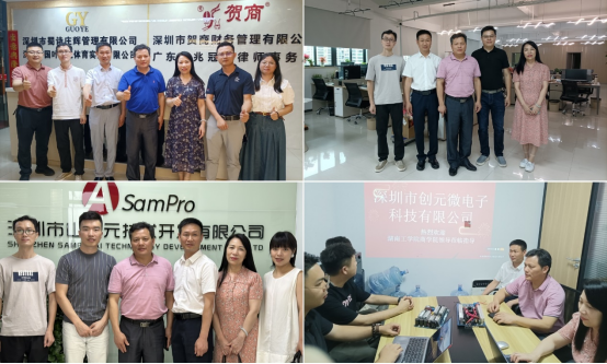 在深圳市贺商财务管理有限公司、深圳市云创展科技有限公司、深圳市山浦元技术开发有限公司、酷派软件技术(深圳)有限公司、深圳市创元微电子有限公司,公司负责人向曹文明一行介绍了公司的发展历程、主要产品和人才需求情况,曹文明对校友企业取得的成绩表示赞赏和祝贺,并表示校友是学校的一笔宝贵财富,感谢优秀校友企业家对学校就业工作的支持。双方就人才需求、科技服务、校友会建设等方面进行了深入交流与探讨。并与我院22、23届毕业生进行亲切交谈,了解其在公司的工作生活情况,并鼓励他们踏实工作,不断学习,提升业务能力和综合素质。
