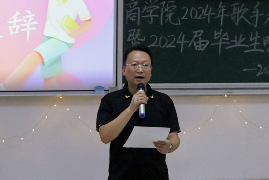 5月28日晚,商学院于经管楼601成功举办“青春拾忆,岁月如歌”歌手大赛暨2024届毕业生晚会。商学院党委书记曹文明、院长王小兵、副院长朱纪红、党委副书记赵晓军、学工办主任段思遥担任评委,全体辅导员及学生代表参加。