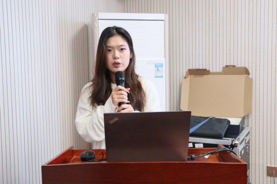 在校学生代表工商2204班的何昳发言,她表示感谢母校的培养,并将以优秀的校友为楷模,勤奋学习专业知识,不断提升个人能力,传承并发扬商学院的优良传统,用行动书写商院学子的华彩篇章。