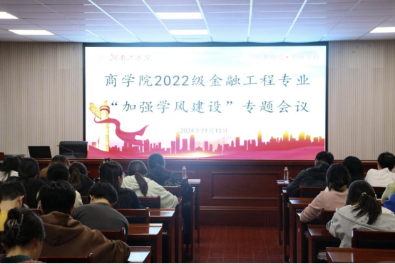 为进一步推动学风建设走深走实,促进优良学风落地生根。11月13日晚,商学院于经管楼302成功开展2022级金融工程专业“学风建设专题会议。商学院副院长李闯、党委副书记赵晓军、金融教研室主任丁燕、辅导员和班主任以及2022级金融工程全体同学参与会议。