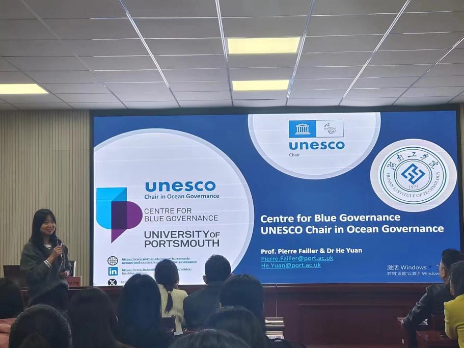 讲座最后,袁合对蓝色治理中心和联合国教科文组织进行简要介绍,并鼓励同学们积极参与其中。