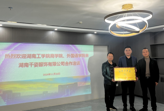 通过深入交流和探讨,校企双方达成了多项合作意向,并签署了就业基地协议,举行了授牌仪式。座谈会后,企业负责人还带领王小兵一行参观了企业办公和生产环境。与会学生代表还就企业人才需求、工资福利待遇、企业文化等方面与千姿服饰方面进行了沟通。
