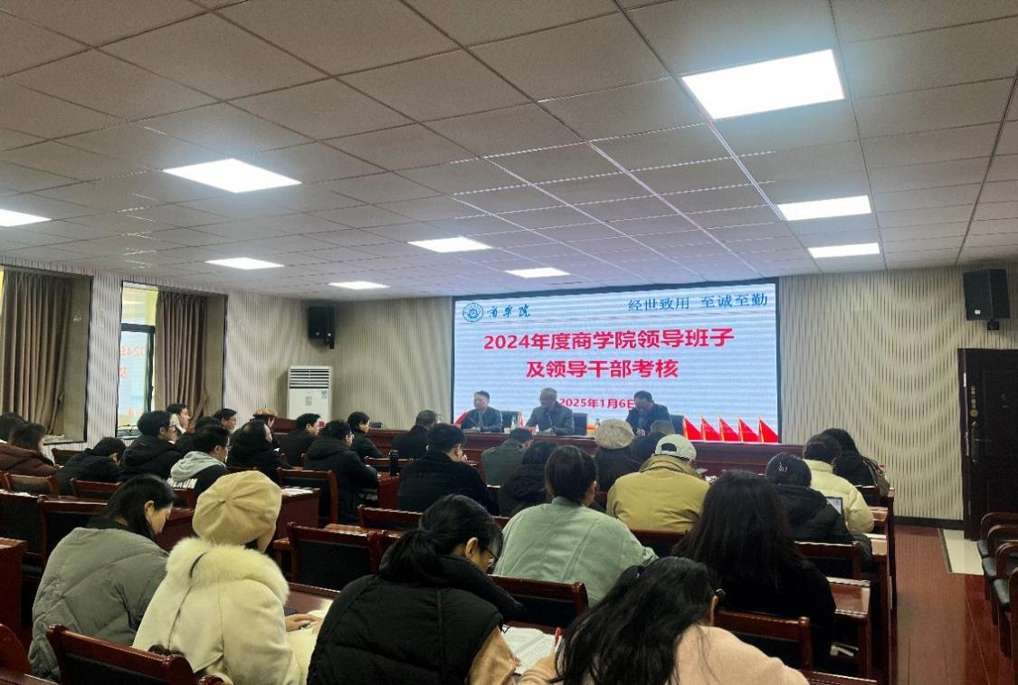1月6日下午,商学院在经302召开领导班子及领导干部考核大会,考核组组长熊新华同志到会指导,大会由学院党委书记王小兵主持,组织部联络员王安东、全体教职员工参加会议。