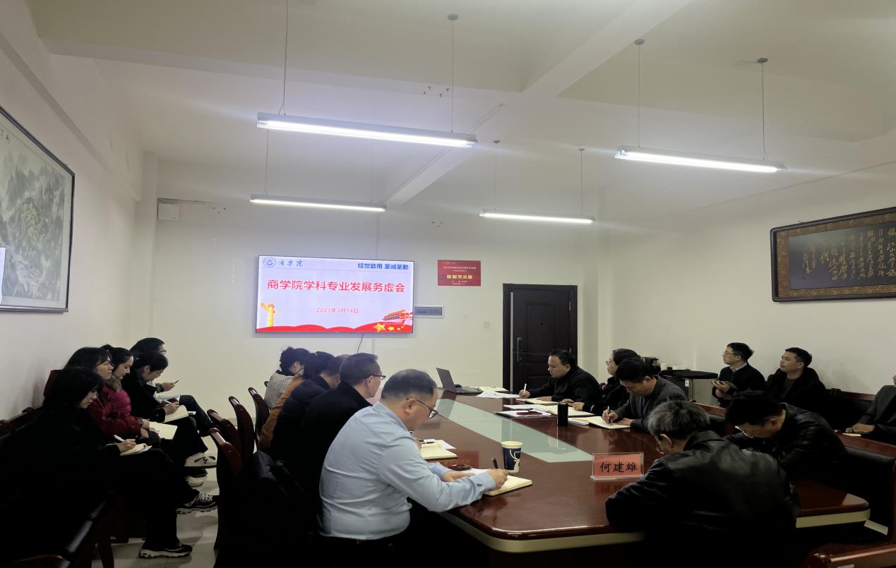 3月14日下午,商学院于经315会议室召开学科专业建设发展务虚会,校党委副书记何建雄同志到会指导。商学院全体院领导、各科室负责人、教研室主任、骨干教师代表等出席,会议由商学院副院长李闯主持。