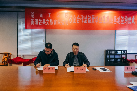 为深化校企合作、推动产教融合,助力毕业生高质量就业,3月18日,商学院党委书记王小兵、副院长朱纪红、党委副书记赵晓军一行赴衡阳芒果文旅有限公司开展校企合作洽谈暨毕业生就业基地签约活动。双方围绕学生实习就业、文旅人才培养、产学研协同创新等领域展开深入交流,并签署战略合作协议,共同为“毕业生就业基地”揭牌。