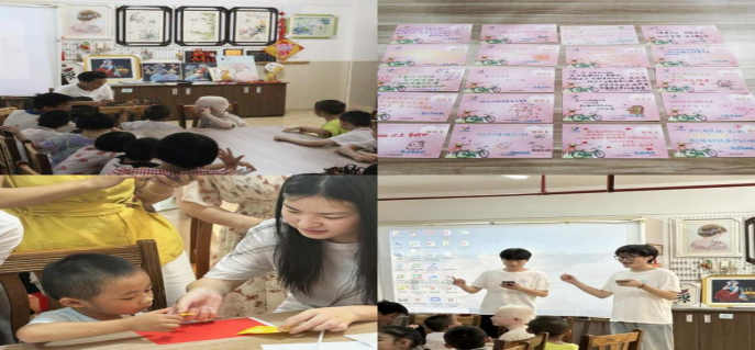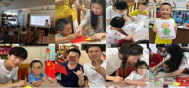 7月1日-5日,志愿者走进幸福香颂幼儿园,团队通过“祖国旗帜在我心”沉浸式课程,组织儿童亲手制作五星红旗、拼合中国地图并畅谈家乡,深化价值观教育。