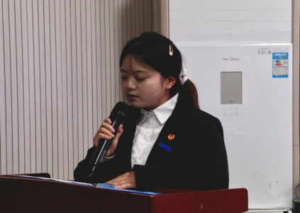 张诗菡宣读接收新团员入团的决定,并寄语全体新成员携手并进,以青春之名,共同书写属于自己的辉煌新篇章,为团组织的发展贡献自己的智慧与力量。
