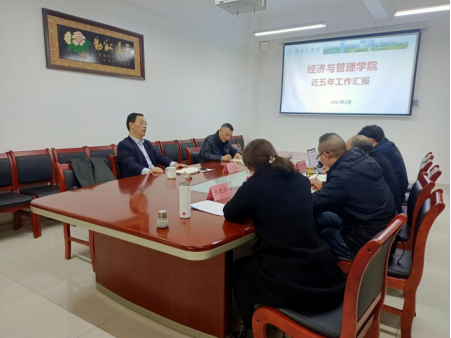 会上,经济与管理学院院长赵少平详细汇报了学院近五年来的工作理念与思路、学院发展现状、制约学院发展的瓶颈、下阶段工作重点以及对学校改革发展的建议。汇报过程中,校领导不时就关心的相关问题进行了解。
