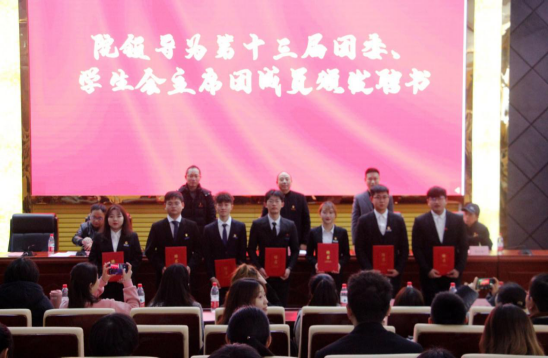 赵晓军宣读了第十三届团委、学生会主席团任命决定,由张忠贤、赵晓军、李闯为他们颁发聘书。