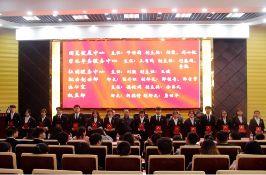 李前奔宣读了第十三届团委、学生会正副部长任命决定,部门指导老师依次为各部门正副部长颁发聘书。