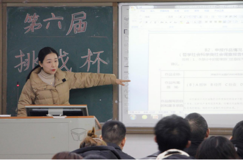 经济贸易教研室主任温毅娴给大家深入分析了参加“大挑”的重要性和意义。大学生发展研究中心副主任毛娜从组赛方角度专业讲解了挑战杯的具体内容和赛事政策,介绍了如何填报参赛申报书,并现场分享了我院童婕同学参赛心得的录制视频。