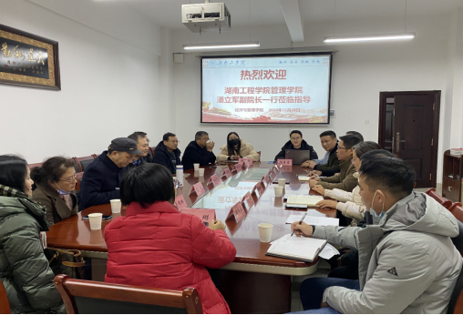 12月29日下午,湖南工程学院管理学院副院长潘立军一行9人到我院考察交流,我院院长赵少平、副院长李闯、副院长朱纪红、党委副书记赵晓军及部分教研室主任参加交流活动。
