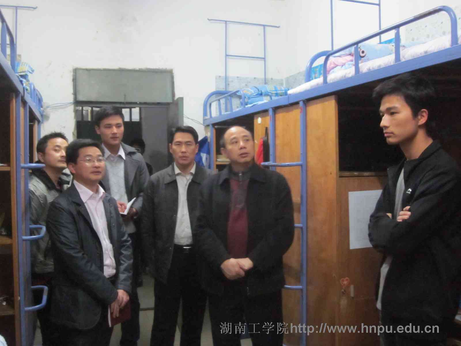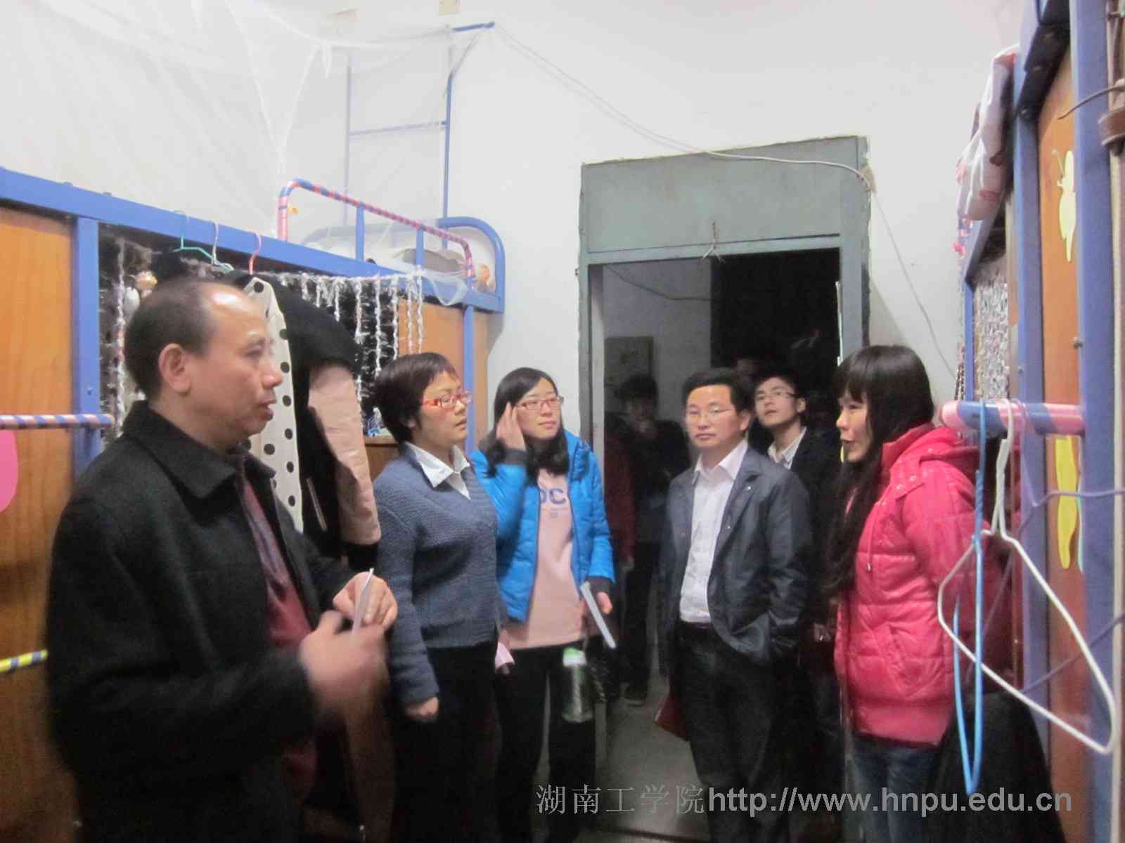 张书记等检查了公寓环境和每栋楼的环境卫生,询问工作人员最近宿舍安全情况。在寝室,张书记就生活环境、学习状况、就业问题、财产安全和宿舍管理等方面与学生展开了交流。和同学交流最近高校盗窃案件频发,他说我们已经安排生活部宿管组每天进行安全巡逻,提醒同学们睡觉、出门要关好门窗,贵重物品随身携带。和毕业班同学交流就业时张书记鼓励他们“今天我以湖工为荣,明天湖工以我为荣”。交流宿舍管理时,张书记说我们会加强这方面工作,并鼓励同学挑问题、提建议,这样才能更好的提升同学们的生活环境。