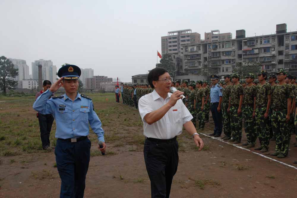 驻衡空军95871部队中校严军代表全体官兵讲话,向圆满完成军训任务、即将步入学习生活的同学们表示热烈祝贺。