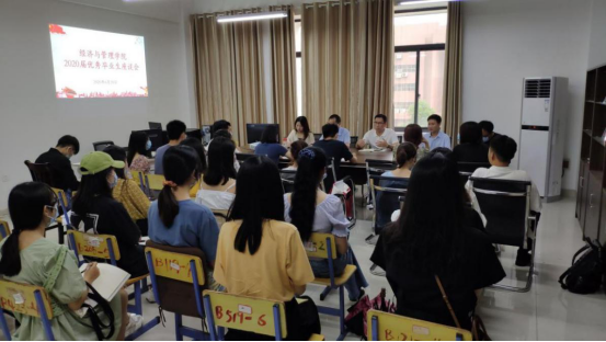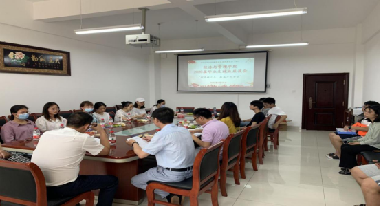 为贯彻落实党的立德树人教育方针,本着“勤学、务实、圆融、卓越”的校训,2020年6月18日至22日,经管学院成功召开了2020届毕业生系列座谈会。院长赵少平、院党委书记张忠贤、副院长李闯、副院长朱纪红、党委副书记赵晓军、全体辅导员老师以及毕业生代表出席,赵晓军主持会议。