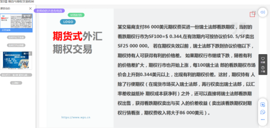此次公开课,丁燕围绕期权展开了本次公开课的内容,主要讲解了期权交易策略的应用。课堂前通过发送习题了解上次课学生对知识把握与应用,以便有针对性地开展本次课程的教学。丁燕主要通过对题目的精细讲解完成了本次公开课的教学,同学们积极参与、及时反馈,并通过投稿的方式展示出自己的学习成果。这不仅保证了课堂效率,更加深了学生对知识点的理解。随后的提问环节中,同学们积极参与课堂互动,及时做出反馈,使本次线上公开课充满了活力。