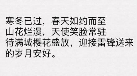 3月24日,我院开展了“重温雷锋精神,续写雷锋日记”主题征文活动,同学们踊跃投稿,以“续写雷锋日记”的形式记录自身和周围的好人好事,并通过微博、微信等渠道进行线上传播,在实践中体会并学习乐于助人、甘于奉献的雷锋精神,争做新时代“活雷锋”。一篇篇洋溢着温暖的日记,让更多同学感受到了满满正能量,雷锋精神更加闪闪发光。