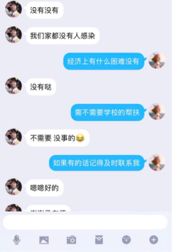 经管学院人数较多,生源分布较广,根据学生情况分年级分类别排查,更快更好的掌握信息;对重点关注的学生和湖北武汉籍学生着重进行心理追踪及对口具体指导。全面了解和解决由于新冠肺炎疫情给学生的心理、思想、生活和学习等方面带来的实际困难。